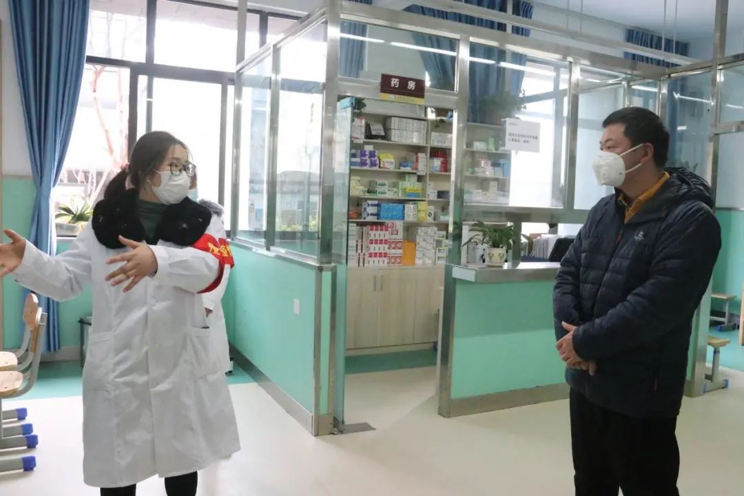在醫務室,董事長詳細詢問學校醫療物資儲備情況、新冠肺炎及其它常見傳染病的處置流程及預防措施,并與學校醫護人員交換意見。隨后,董事長又實地查看、指導學校發熱留觀室設置與新冠肺炎防控卡點值守情況,親切慰問在疫情防控中堅守一線的校園安保、醫務、物業等人員。